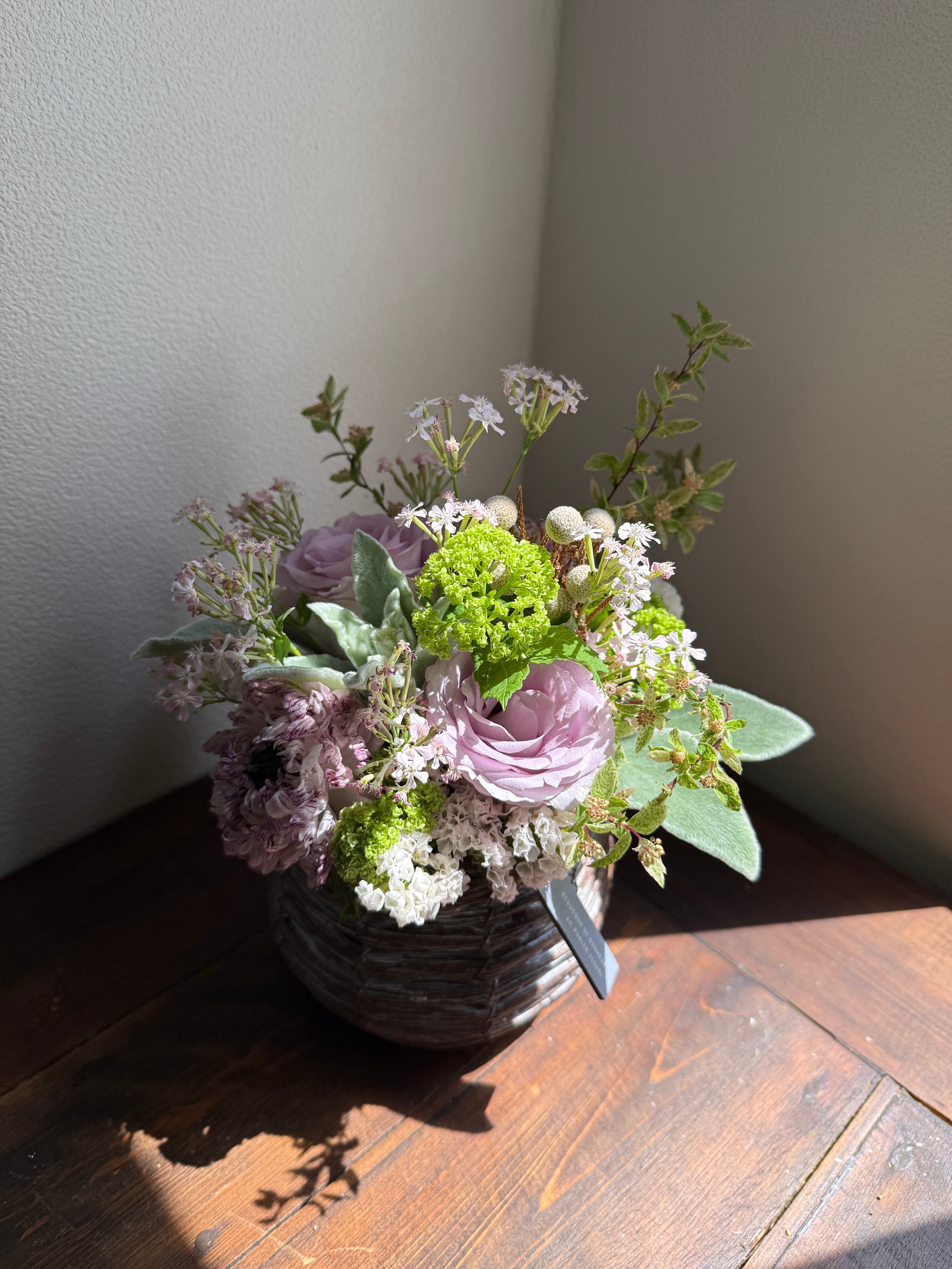 今年のアレンジは、写真1枚目のバスケットのお色です。
