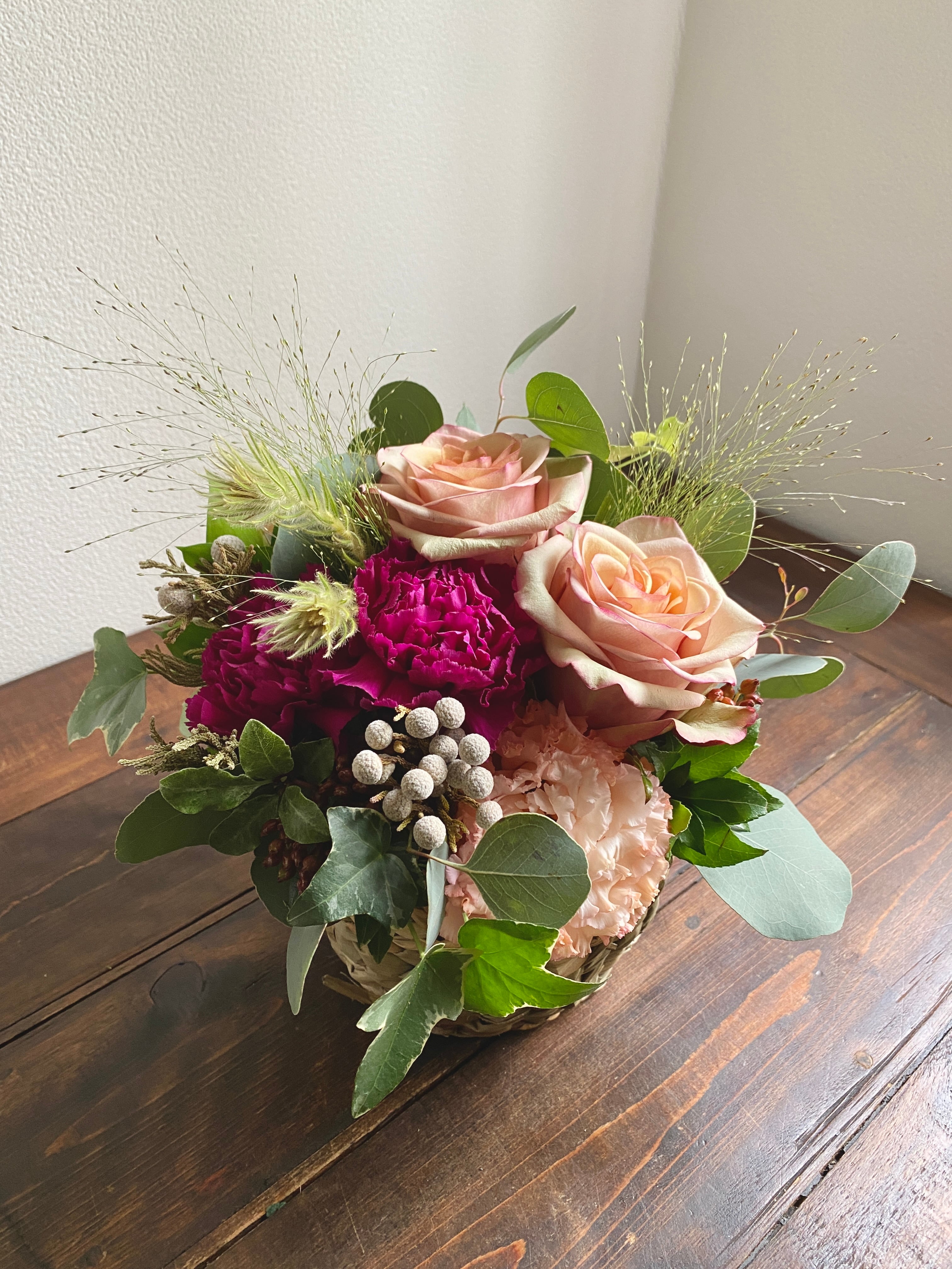 今年のアレンジは、写真1枚目のバスケットのお色です。