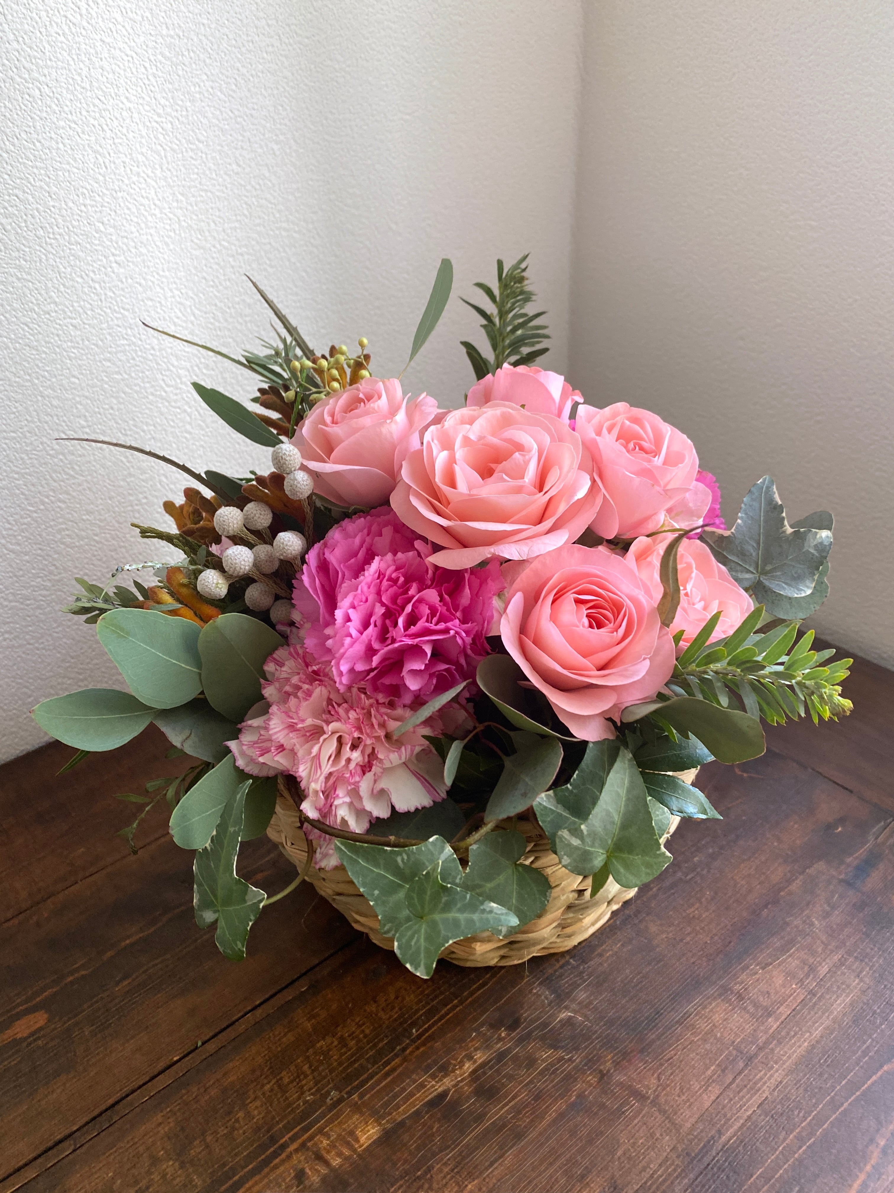 今年のアレンジは、写真1枚目のバスケットのお色です。