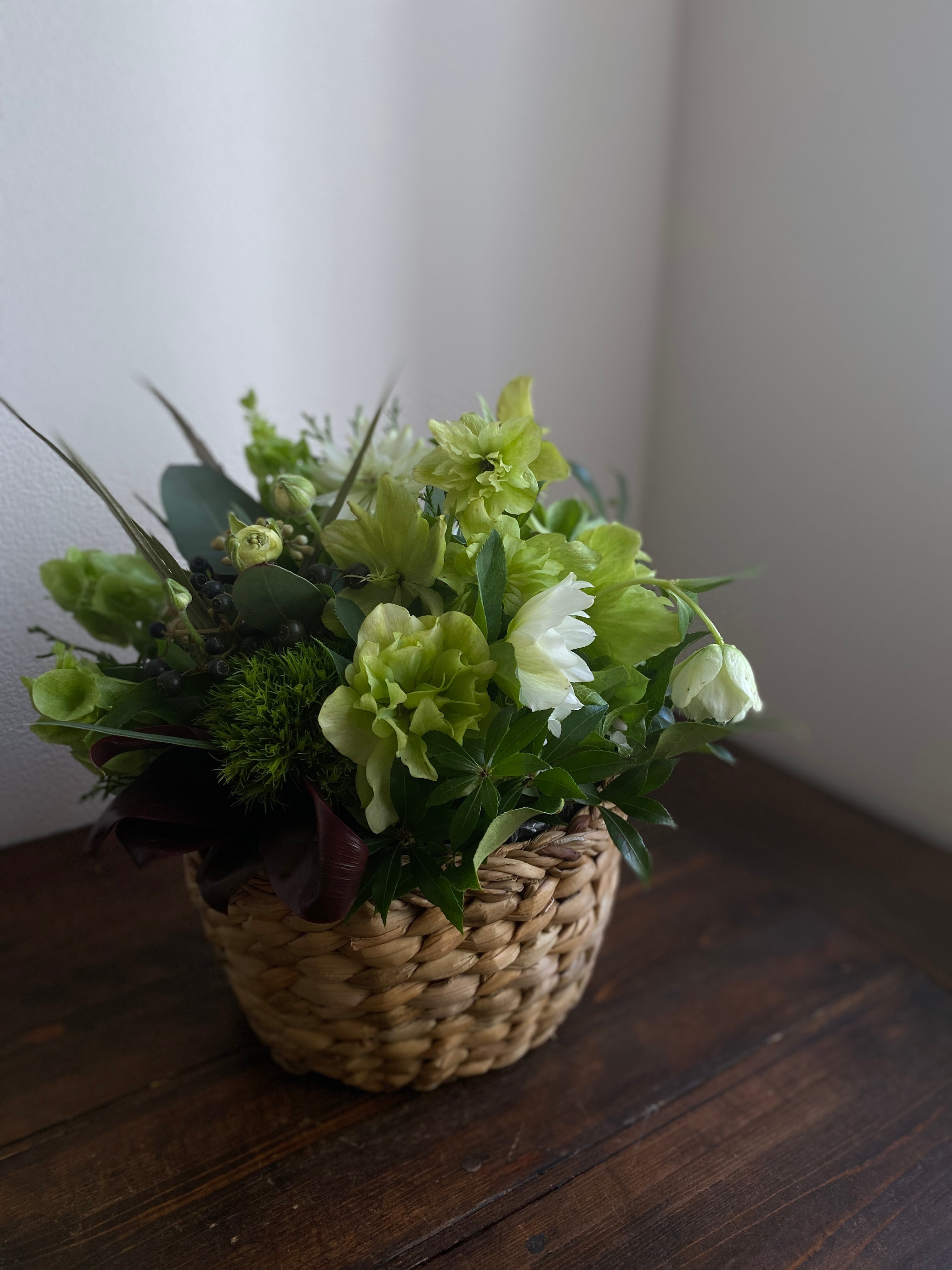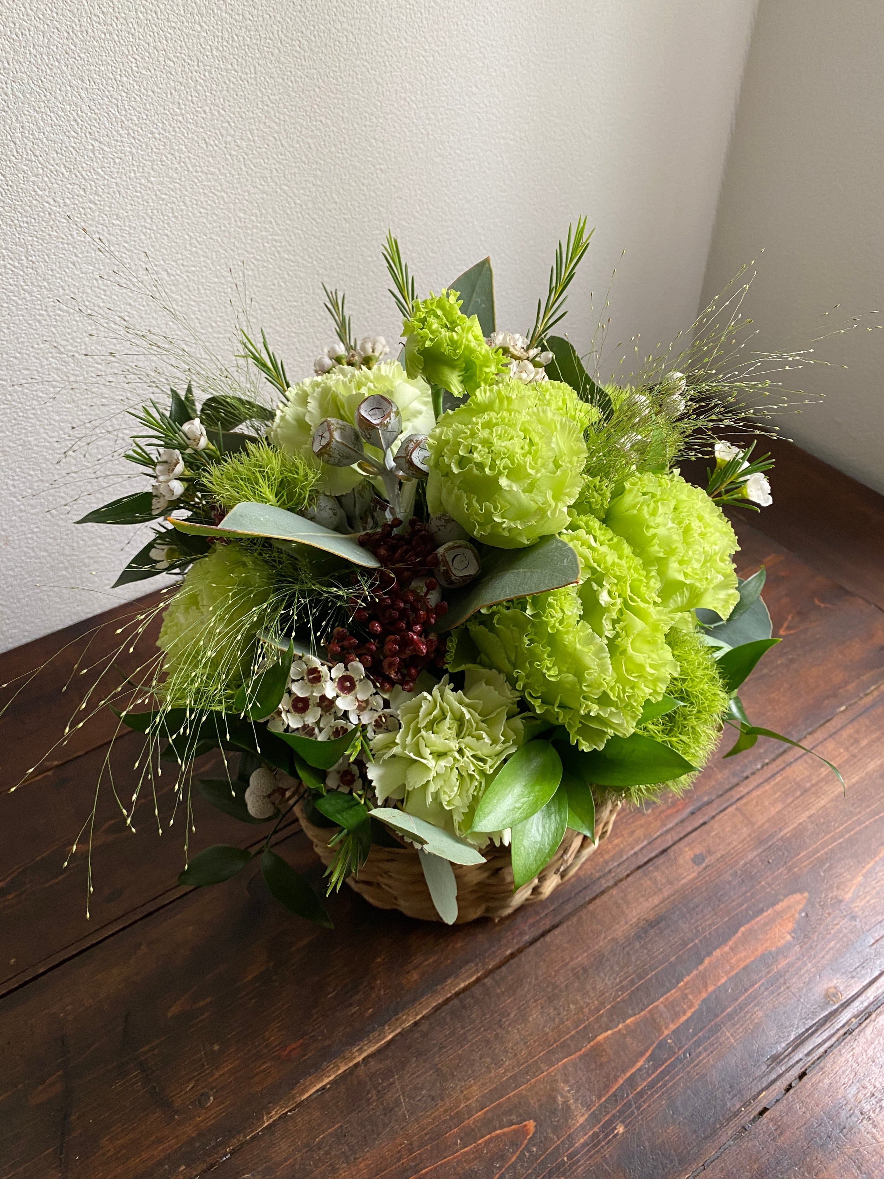 今年のアレンジは、写真1枚目のバスケットのお色です。