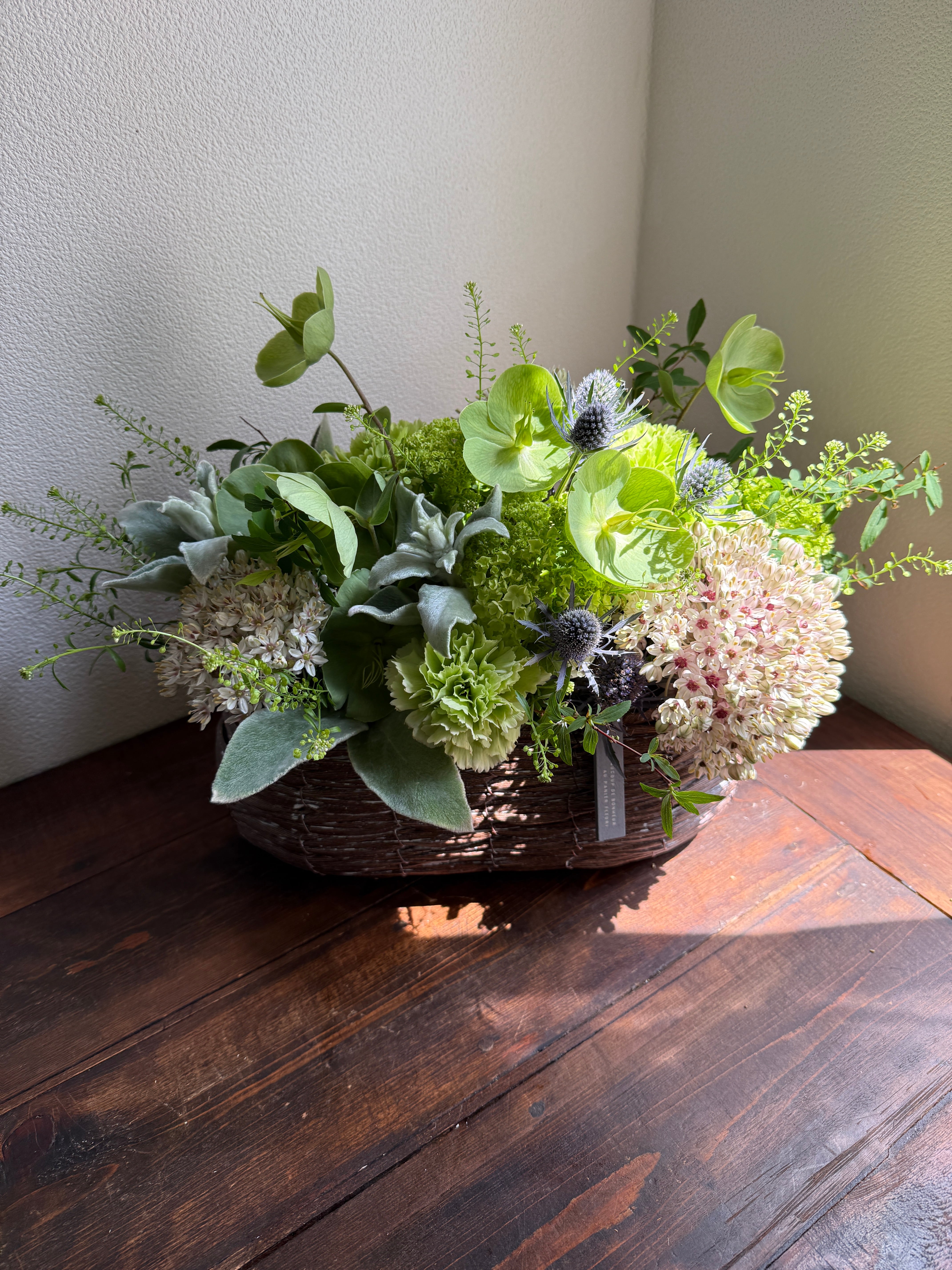 今年のアレンジは、写真1枚目のバスケットのお色です。